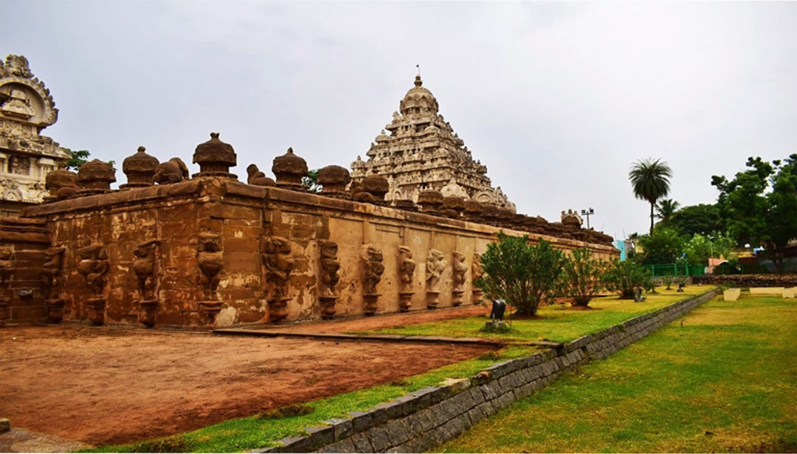 The Kanchi Kailasanathar temple is the oldest structure in Kanchipuram. Located in Tamil Nadu, India, it is a Hindu temple in the Tamil architectural style. It is dedicated to the Lord Shiva, and is known for its historical importance. The temple was built from 685-705 AD by a Rajasimha ruler of the Pallava Dynasty.